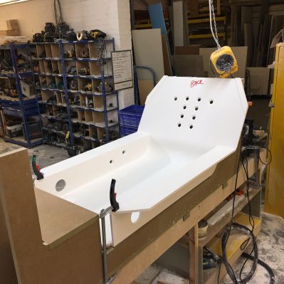 Large Bespoke Bath and Bathroom Furniture in Alpine White HI-MACS