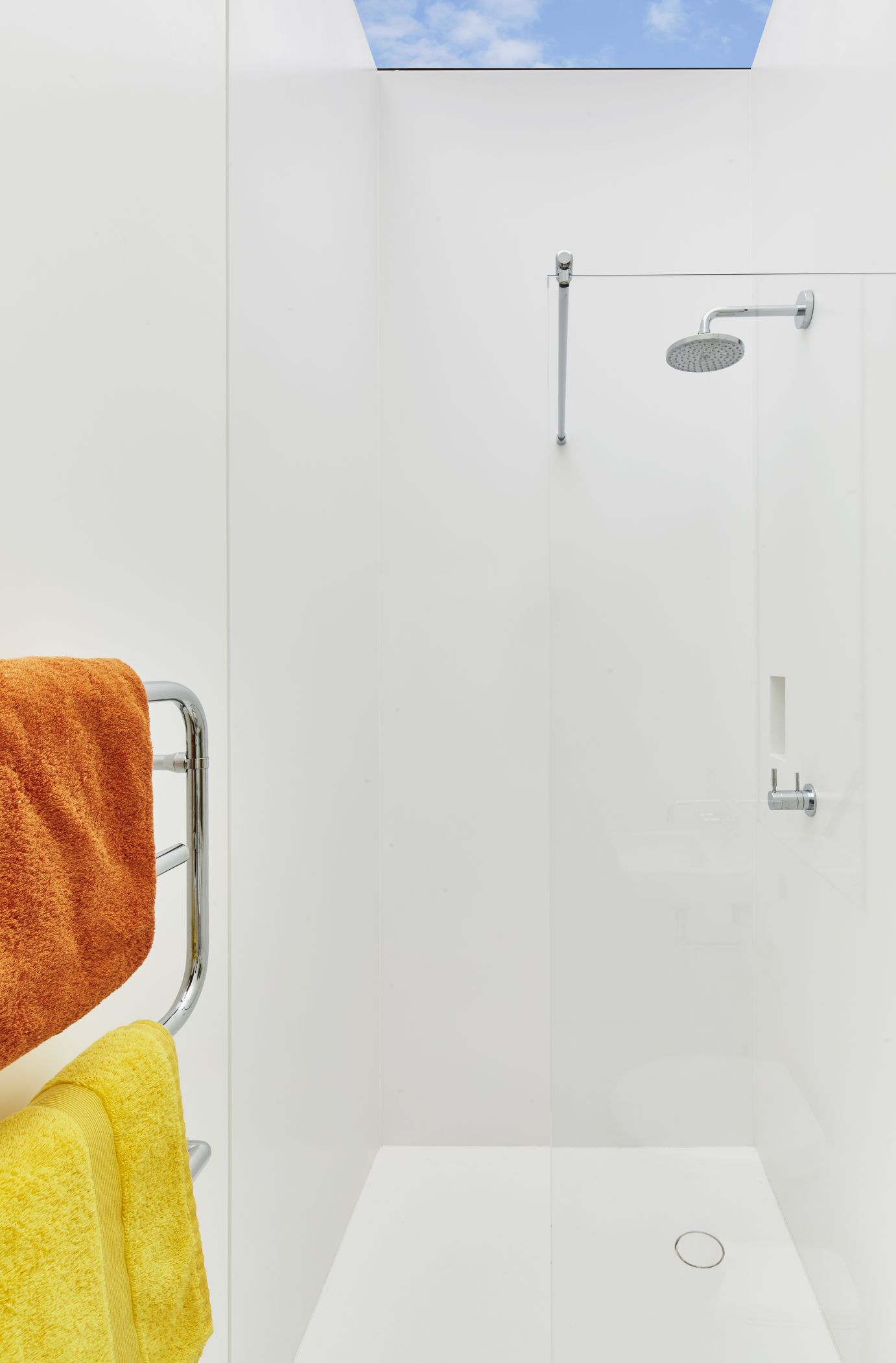 Iconic Richard Rogers 1960s single storey home at 22 Parkside, Wimbledon. Recently restored by Gumuchdjian Architects with HI-MACS® wet rooms and wall panelling by Solidity.