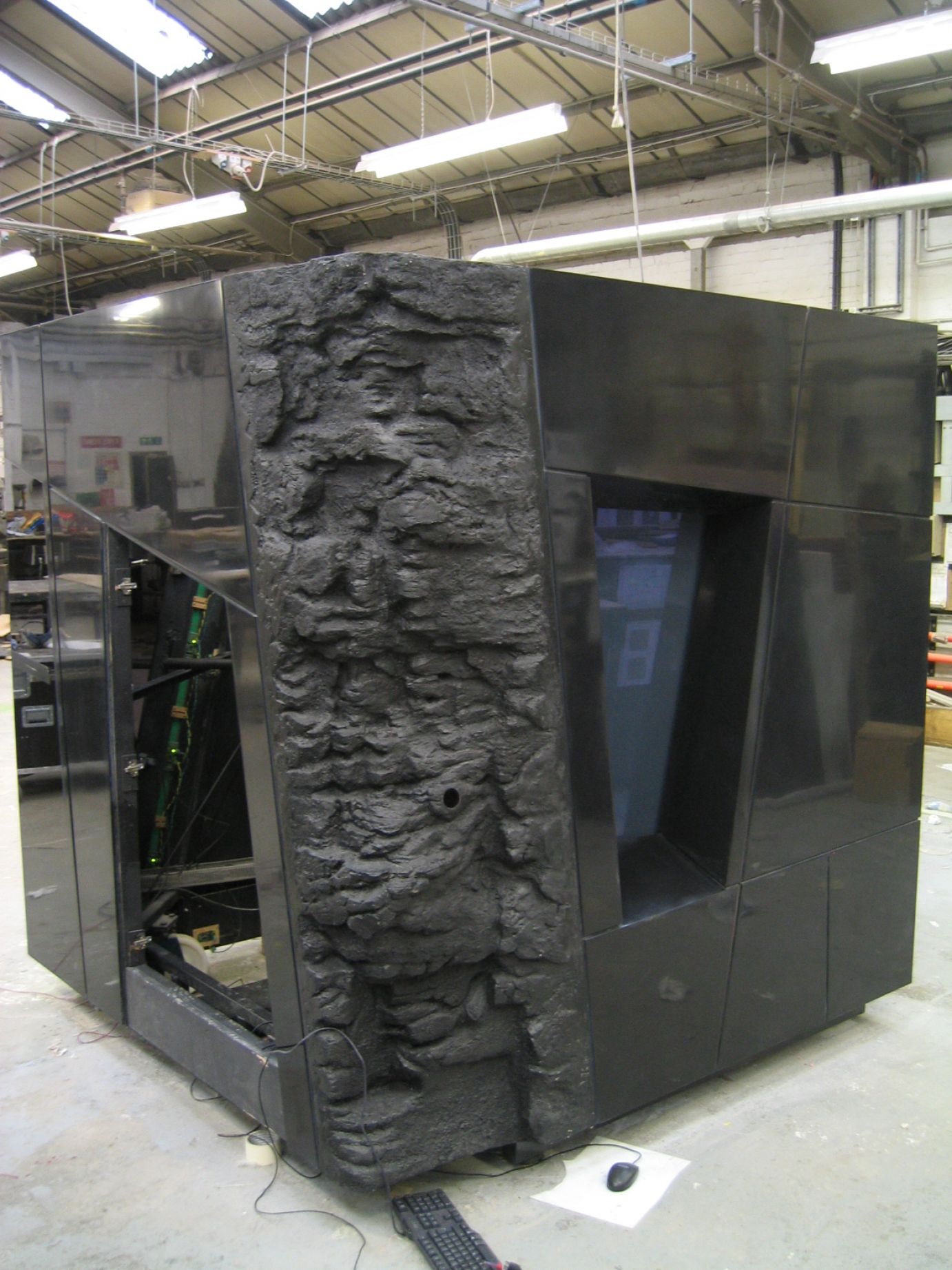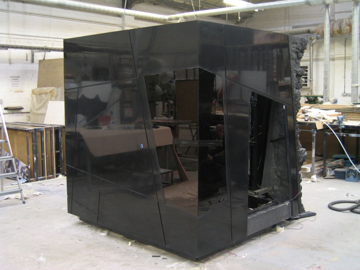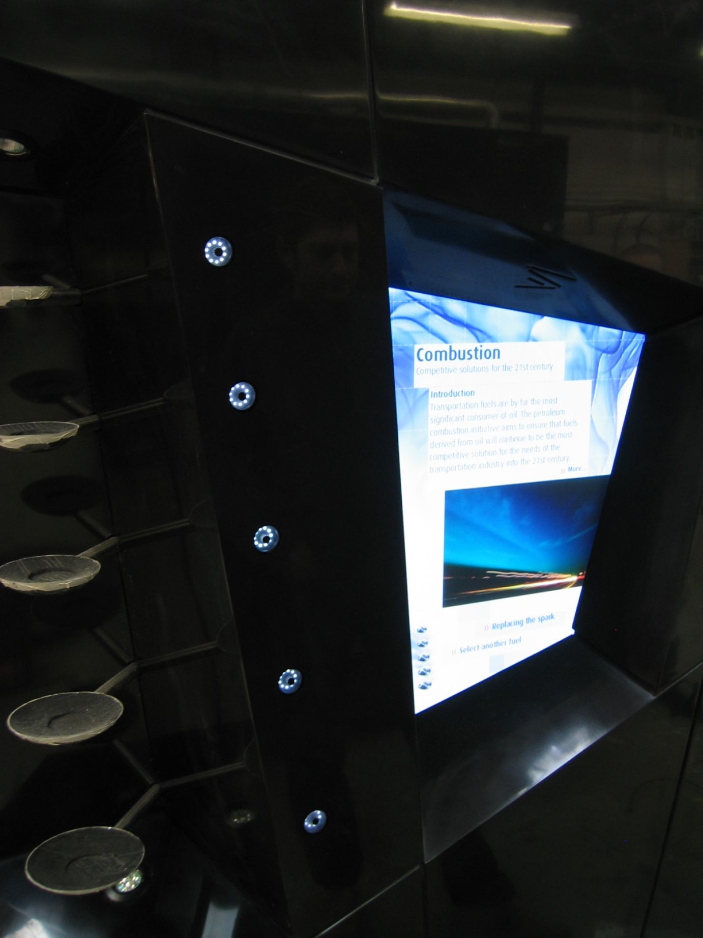 Solidity made these 2 metre tall, high gloss, black, HI-MACS cubes for Saudi Aramco's head office. The cubes are an interactive exhibition which show how oil is created, recovered and used.
